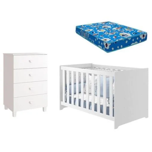 Quarto De Bebê Gino E Berço Americano Tico Branco Acetinado Com Colchão Ortobom Reller