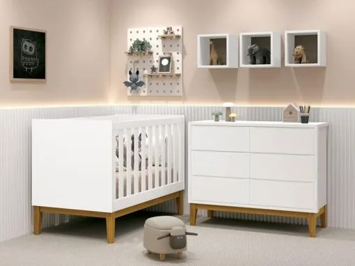 Quarto De Bebê Retrô Cômoda Com Porta Cris Berço 3 Em 1 Ludmila Branco Com Bétula Carolina Baby