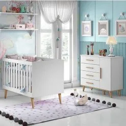 Berço Americano E Cômoda Infantil Ludmila Branco Bétula Com Colchão Ortobom Carolina – Carolina Baby