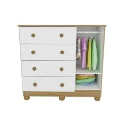 Roupeiro-Comoda Meu Bebe 4 Gavetas 1 Porta Wengue / Branco Brilho – M贸veis Cana茫