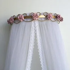 Dossel Arabesco De Flor Menina Com Tule Guipir – Berço De Luxo