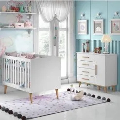 Berço Americano 3820 E Cômoda Infantil 3825 Q Encanto Retrô Branco Brilho – Qmovi