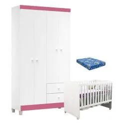 Berço Americano Gabi Com Colchão E Guarda Roupa Ternura Baby 4 Portas Branco Flex – Incorplac