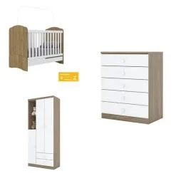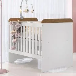 Quarto De Bebê Cômoda Com Fraldário Berço 3 Em 1 Gabrielle Branco Amadeirado Carolina Baby