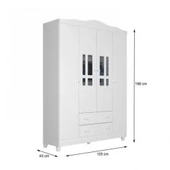 Quarto De Bebê Cômoda 4 Gavetas Com Porta Berço Mini Cama Provençal Lisa Branco Brilho Carolina Baby