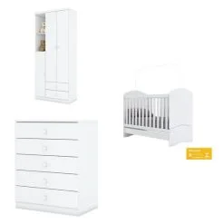Quarto De Bebê Cômoda 4 Gavetas Com Porta Ariel Berço 3 Em 1 Gabrielle Branco Brilho Carolina Baby