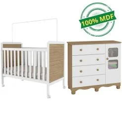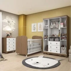 Quarto De Bebê Cômoda Com Fraldário Taís Berço Mini Cama Mirelle Branco Amadeirado Carolina Baby
