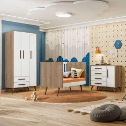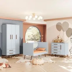 Quarto De Bebê Retrô Completo Com Guarda-roupa – Berço E Cômoda Carolina Baby Milla
