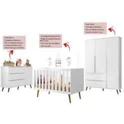 Quarto De Bebê Retrô Cômoda Com Porta Cris Berço 3 Em 1 Ludmila Branco Com Bétula Carolina Baby