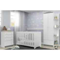 Quarto Infantil Completo João E Maria Com Berço 4 Em 1 + Roupeiro E Cômoda Branco – Multimóveis