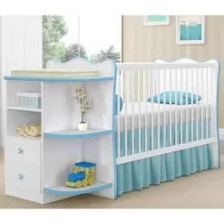 Quarto Para Bebê Doce Sonho – Berço Cantoneira E Guarda Roupa – Branco/azul – Qmovi