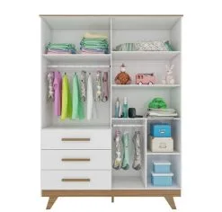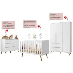 Kit Quarto Bebê Retrô Melinda Branco Roupeiro + Cômoda + Berço Mini Cama Ana – Mobili