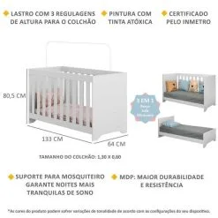 Berço 3 em 1 para Colchão 60 x 130 cm Multimóveis Branco
