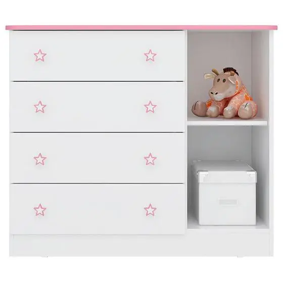 Cômoda Infantil Doce Sonho 2561 Branco Rosa Brilho – Qmovi