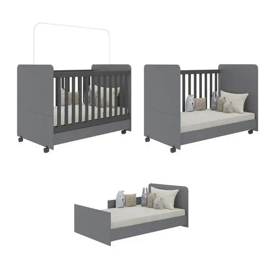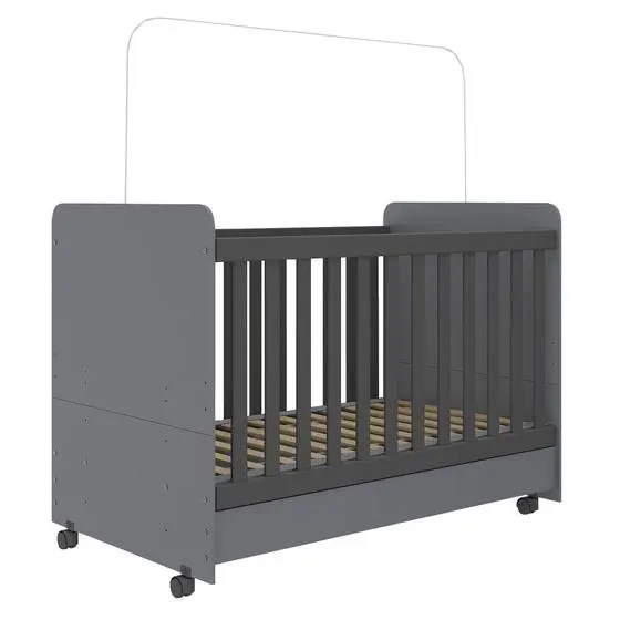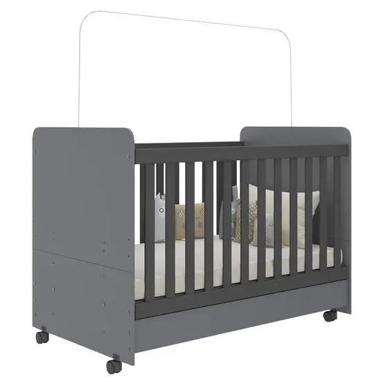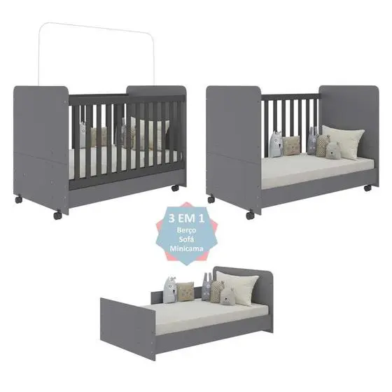 Berço Americano 3 em 1 com Rodízios para Colchão 70×130 cm Pimpolho Multimóveis Cinza/Preto