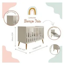 Berço Americano e Cômoda Infantil com Porta Isis Areia Acetinado com Colchão Gazin – Reller