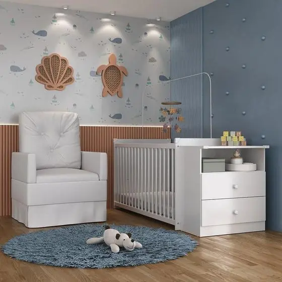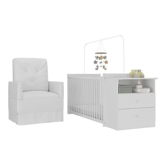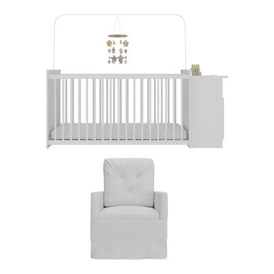 Berço Cômoda com Colchão Incluso e Poltrona de Amamentação Meu Bebê Multimóveis MP4096