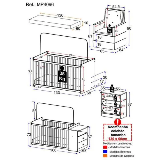 Berço – Altura: 73cm | Largura: 166cm | Profundidade: 68cm