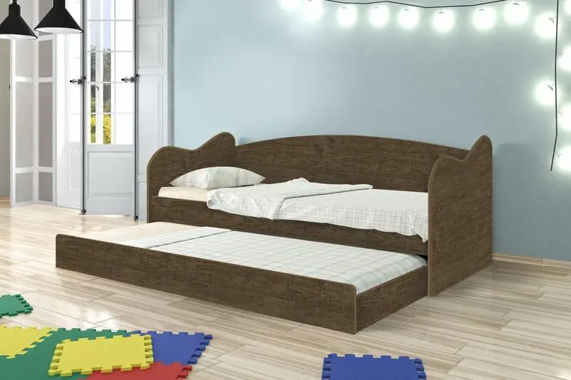 Conta com uma cama auxiliar que é perfeita para quem precisa otimizar ao máximo o espaço do quarto.