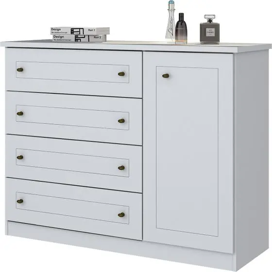 Cômoda De Bebê Americano 1 Porta 4 Gavetas Branco Hp – Henn