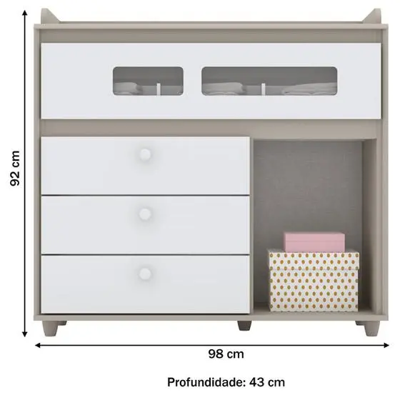 Cômoda De Bebê Aquarela 1 Porta 4 Gavetas Cristal/branco – Henn