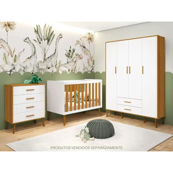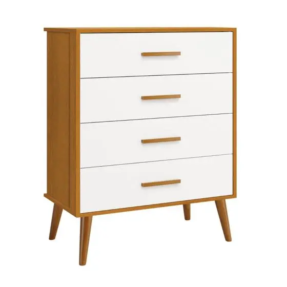 A cômoda Isis é uma excelente opção pra quem procura por qualidade, beleza e praticidade. Seus pés retro em madeira dão charme e elegância ao produto. Possui 4 gavetas espaçosas, corrediças telescópicas e puxadores em madeira.