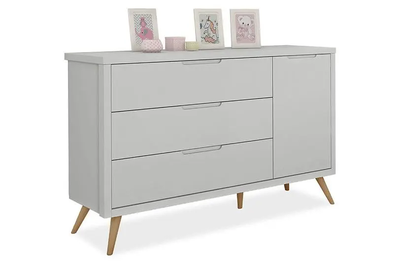 Comoda Infantil de Bebe Old Clean 3 gavetas 1 porta mdf planet baby cinza acetinado