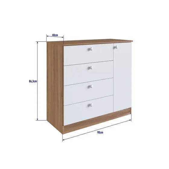 Cômoda para Bebê e Quarto Infantil com 4 Gavetas e 1 Porta