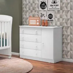 Cômoda Sapateira Infantil 1 Porta E 4 Gavetas Doce Sonho 2561 Branco Qmovi