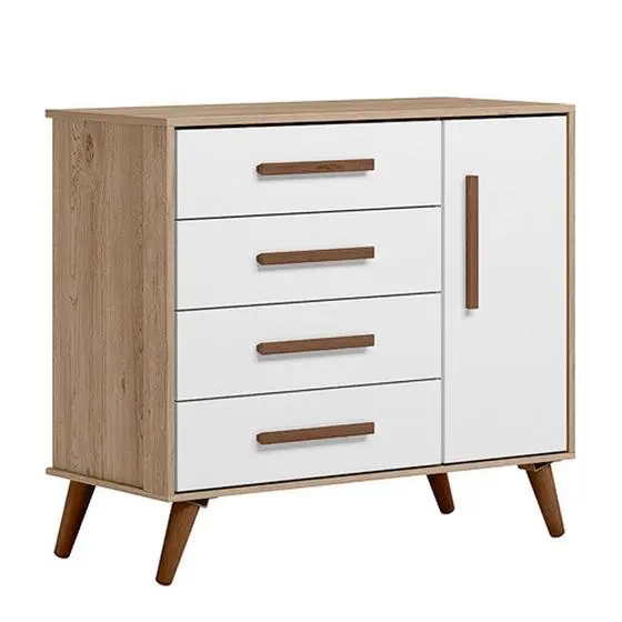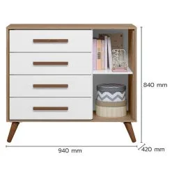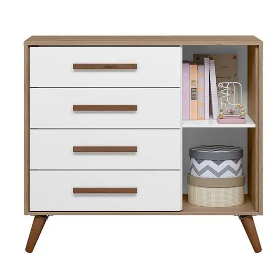 Cômoda Sapateira Infantil 1 Porta e 4 Gavetas Q Encanto Retrô 3825 Carvalho Rústico TOQ Branco Qmovi