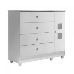 Conjunto Quarto de Bebê Mini Berço com Colchão e Cômoda 1 Porta 4 Gavetas Tigus Baby