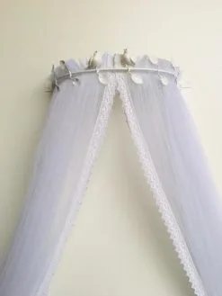 >>>O mosquiteiro é confeccionado em TULE especial para mosquiteiro e tem no acabamento RENDA, deixando o produto com acabamento impecável! Mosquiteiro fecha na parte de cima do dossel, mantendo vedado contra insetos! Fixação do mosquiteiro no dossel é de encaixe, super simples e rápida. Além de ser uma peça decorativa, protegerá seu bebê!!