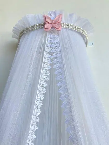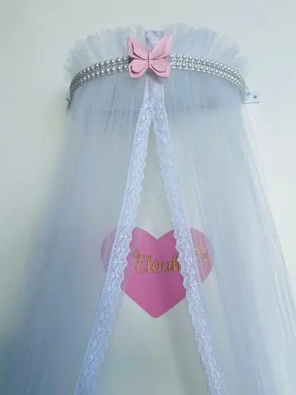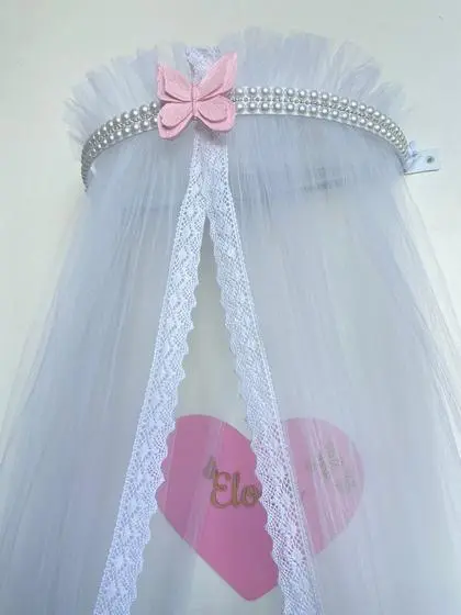 DOSSEL PÉROLAS BORBOLETA ROSA COM MOSQUITEIRO TULE Renda Larga