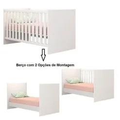 Jogo de Quarto para Bebê Helena com Guarda Roupa 4 Portas + Cômoda + Berço Mini Cama 100 – Phoenix Baby Quarto de Bebê Helena com Guarda Roupa 04 Portas + Cômoda e Berço Mini Cama – Phoenix Baby Se você está em busca de Móveis modernos que possua qualidade, durabilidade, seja bonito e ainda poupe espaço físico no quarto do seu filho, então precisa conhecer a linha de Móveis da Phoenix Baby que são produzidos em MDP, com pintura atóxica. Características Produzido em 100% MDP Acabamento em pintura ultravioleta (UV) Pintura atóxica Várias prateleiras Puxadores em poliestireno PVC Portas com dobradiças metálicas Gavetas com corrediças metálicas Acompanha manual e todos os acessórios para montagem Dimensões Guarda Roupa 4 Portas Altura: 2,03 m Largura: 1,47 m Profundidade: 0,45 m Cômoda 1 Porta e 4 Gavetas Altura: 0,92 m Largura: 1,05 m Profundidade: 0,45 m Berço Mini Cama Altura: 0,77 m Largura: 0,75 m Profundidade: 1,332 m Obs.: Não acompanha colchão 3 meses de garantia MONTAGEM: Ficará a cargo do comprador, segue junto ao produto esquema de montagem, embora seja simples, recomendamos que seja efetuada por profissional do ramo. Observação: As imagens são meramente ilustrativas não acompanhando objetos de enfeites e eletros. Todos os produtos vão desmontados e embalados. Todo o produto contém manual de montagem. Ao receber o produto verifique as condições da embalagem, havendo alguma avaria não assine o comprovante de recebimento entre em contato conosco para orientações ou caso tudo esteja em ordem com as embalagens façam uma observação que vão conferir a mercadoria no ato da montagem. Confira as dimensões do produto e certifique-se de que passarão normalmente por supostos elevadores, portas, escadas ou corredores de sua moradia. Entregamos os produtos até a frente de sua moradia, ou seja, até sua porta se for casa ou portaria se for apartamento. Não nos responsabilizamos no ato da entrega, caso o produto necessite de desmontagem, subir ou descer escadas ou elevadores, passar por corredores estreito, transporte por guincho para apartamento.