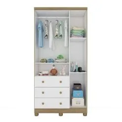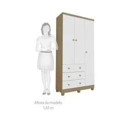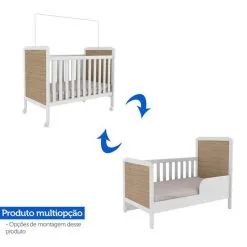 Kit Quarto Bebê Infantil Conjunto MDF Berço Americano Cômoda Armário Guarda Roupa Cor Madeira Branco