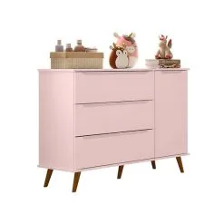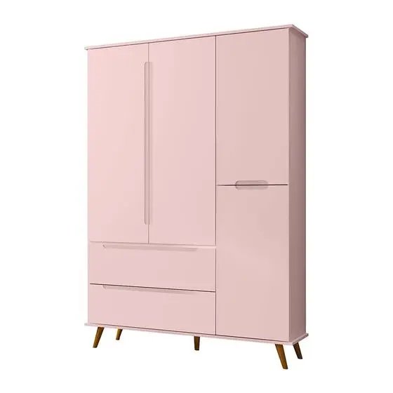 Kit Quarto Bebê Retrô Melinda Plus Rosê Roupeiro 3P + Cômoda 1Porta + Berço Mini Cama Ana 100% MDF