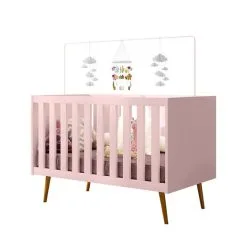 Quarto de Bebê Retrô Melinda Plus Mobili. Este lindo jogo de quarto foi projetado pensando em você, mamãe, que se preocupa com o aconchego e a segurança de seu bebê. Ele é composto por 1 Roupeiro, 1 Cômoda e 1 Berço 3 em1, todos produzidos com material 100% MDF, pintura em acabamento acetinado e pés palito estilo retrô em madeira rústica de eucalípto maciço reflorestado. É sem dúvidas a combinação perfeita de qualidade, conforto e estilo para o quarto do seu bem mais precioso. Garanta já o seu!!!