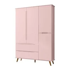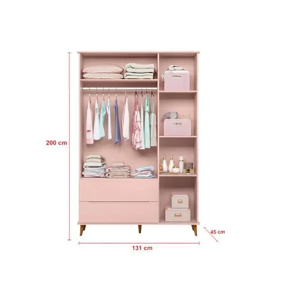 O Roupeiro Melinda Plus possui 4 portas e 2 gavetas. As portas foram elaboradas com puxadores embutidos estilo cava, este design facilita a abertura e também proporciona ao móvel um aspecto retrô e minimalista. Na parte interna você poderá contar com 3 prateleiras , 1 maleiro e 1 cabideiro, todos com um ótimo espaço para que possa organizar as roupinhas, acessórios e enxovais de seu bebê. Ele também possui 2 gavetas com corrediças telescópicas e espaço interno de aproximadamente 80 cm de largura x 34 cm de profundida.