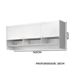 Dimensões do armário aéreo:Largura 160 cm; Profundidade 38 cm; Altura 67 cm;