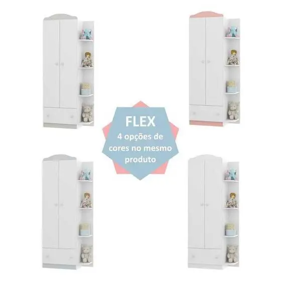 A cômoda, com 4 gavetas espaçosas possui o sistema antitombamento, que contribui para evitar acidentes. O mais legal desta linha é que ela é flex, ou seja, o roupeiro e a cômoda acompanham detalhes em 4 cores (Branco Premium, Rosa Premium, Azul Premium e Cinza Premium), e você pode escolher qual é a sua preferida na hora da montagem.