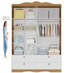 Quarto De Bebê Guarda Roupa 3P Ariane Cômoda 3 Gavetas Bianca Berço Gabrielle Branco Carolina Baby