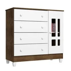 Cômoda Infantil Ariel Branco Acetinado Amadeirado – Carolina