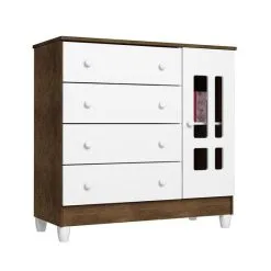 Cômoda Infantil Ariel Branco Acetinado Amadeirado – Carolina
