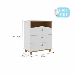 Berço Americano Mirelle E Cômoda Ariel Branco Acetinado Amadeirado – Carolina – Carolina Baby