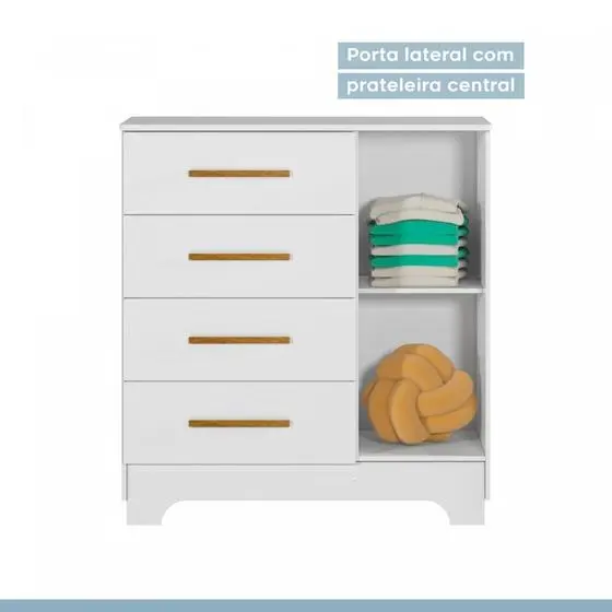 Quarto De Bebê Guarda Roupa 4 Portas Cômoda Ariel Berço 3 Em 1 Gabrielle Amadeirado Carolina Baby