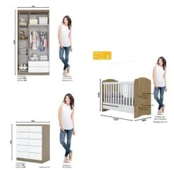 Quarto De Bebê Guarda Roupa 4 Portas Cômoda Ariel Berço 3 Em 1 Gabrielle Amadeirado Carolina Baby