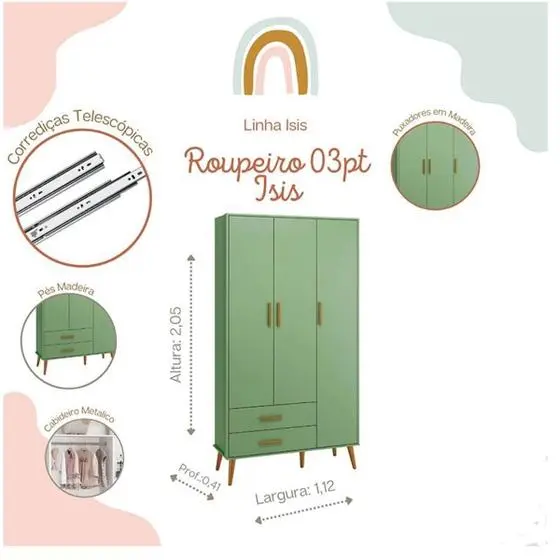 Guarda Roupa Infantil 3 Portas Isis – Reller