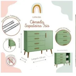 Quarto de Bebê Isis Roupeiro 3 Portas mais Cômoda Sapateira mais Berço Mini Cama – Reller