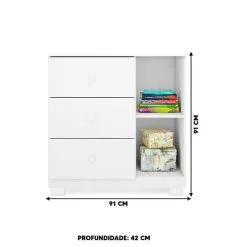 Dimensões da cômoda:Largura 91 cm; Profundidade 42 cm; Altura 91 cm;