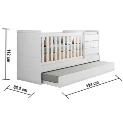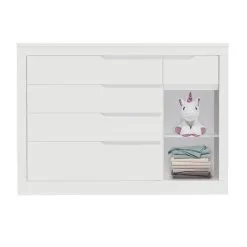 Um dos queridinhos das mamães, o Berço Multifuncional Cléo oferece a melhor relação custo-benefício. A peça que acompanhará o seu filho por um bom tempo. Além do berço e da mini cômoda, ela ainda vem com uma cama e outra auxiliar embaixo. Já a cômoda fraldário é o modelo perfeito para valorizar a decoração do quarto do seu filhote. Com 5 gavetas e um fraldário tem espaço de sobra para manter tudo organizado, o móvel é todo fabricado em MDF de alta resistência mecânica e durabilidade. Este produto se encontra disponível apenas na cor Branco Fosco.